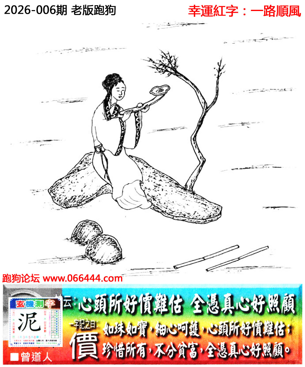 006期老版跑狗一字記之曰:【價】 詩雲:心頭所好價難估,全憑真心好照顧。 如珠如寶,細心呵護,心頭所好價難估; 珍惜所有,不分貧富,全憑真心好照顧。 玄機測字:《泥》